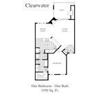 Our one bedroom, one bathroom Clearwater floor plan is created for comfortable, everyday living and grand entertaining. Our extra large living area features wood beams and plush carpeting, which add to this charming living space.